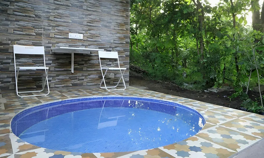 Spread across 3 acres of lush greenery, Tiger N Woods features 14 beautifully designed accommodations. Guests can choose from 10 charming Wooden Machaans or one of our 4 luxurious Tiger Suites, each offering a unique, immersive experience. The resort also provides a variety of amenities, including a refreshing swimming pool, “Roar”—our diverse multi-cuisine restaurant, “Tipsy Tiger”—a vibrant bar, a cozy bakery, a delightful souvenir shop, and several tranquil spots to relax. For a more intimate experience, enjoy the serene ambiance of our Mahua Machaan or gather with friends around one of our bonfire areas.